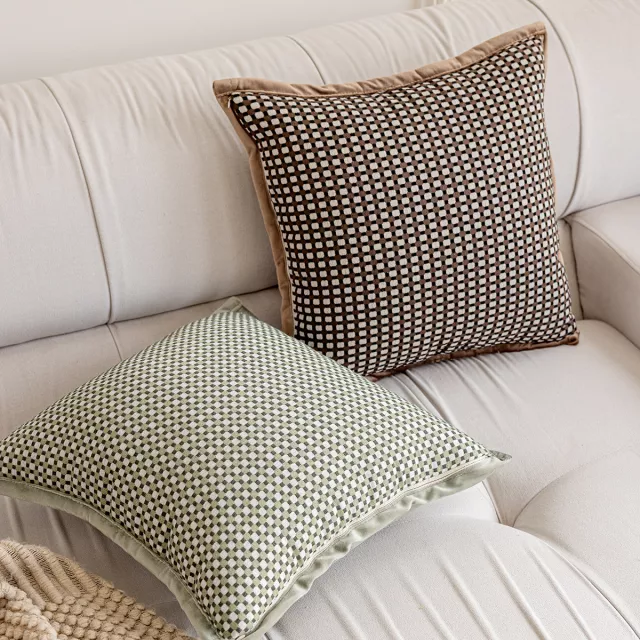 This pillow cover stands out thanks to its unique grid pattern combined with the richness of green and brown—two colors inspired by nature’s calming palette. Crafted with care using tatting weaving, it offers both visual texture and lasting quality. Plus, it’s free from harmful chemicals, making it a safe, family-friendly addition to your home.