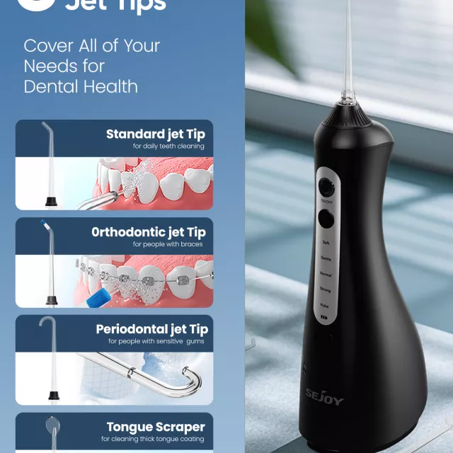 • Five adjustable modes for personalized cleaning—perfect for braces, implants, and sensitive teeth.