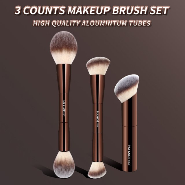 Our 3-piece brush set is not just about looks — it’s about performance. With its double-ended design, you get more than one brush for different tasks, making it both practical and efficient. The synthetic bristles are designed for a soft, yet durable feel that ensures an even application every time. Whether you’re using it to apply liquid foundation, blend cream products, or buff in powders, this set delivers professional-quality results.