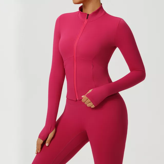 Women’s Long Sleeve Zip-Up Yoga Jacket – Slim Fit Workout Top
